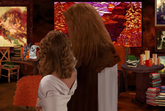 As Catherine, who was feeling quite enchanted, traced Vincent intriguingly dimpled chin, she told him, "I missed being here with you, being a part of your world, I missed the endless sea of books, the intriguing artifacts, the scent of burning candles..."