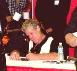 | Ron at the Comic Con! May 15, 2004 My husband Dan, saw Ron Perlman was on the Comic Con list, for the 2004 Comic Con in Novi Michigan, to promote his "Hellboy" movie! Needless to say, I was over the moon excited to see Ron Perlman in person, and so Dan drove me from Ohio to see him. I have never gone to a Comic Con before, so I didn't realize how accessible the stars are to us there. But there he was...right in front of me, only a few feet away! I then stood in line with all the hundreds of other fans, waiting to get his autograph. It was very exciting talking to the other fans as they were as eager as I was to meet him. Luckily, Dan was on the job and ready with a camera to document this very auspicious occasion. I hope you enjoy seeing Ron in these Comic con pics as much as I still do. I still cannot believe it! Hmm, I wonder if you can spot me in the crowd? |