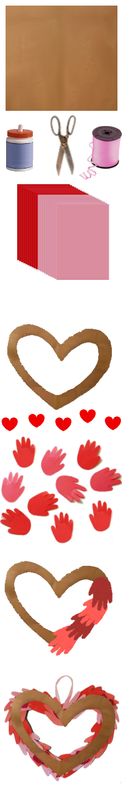 | Here's what you will need: Cardboard Scissors Ribbon Paste Pink and Red Construction paper |