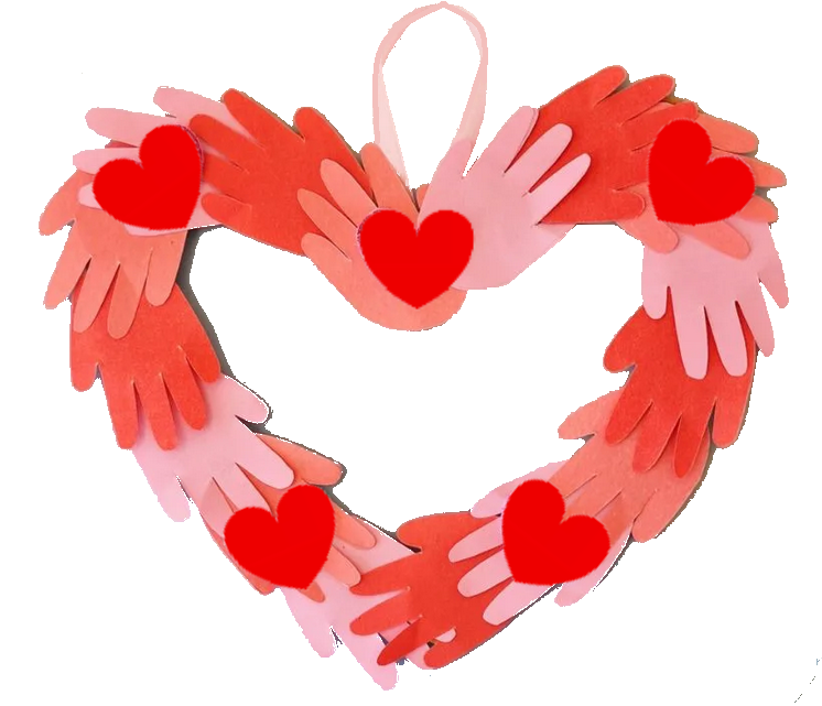 | Then start pasting and overlapping your hand print onto the Heart base |